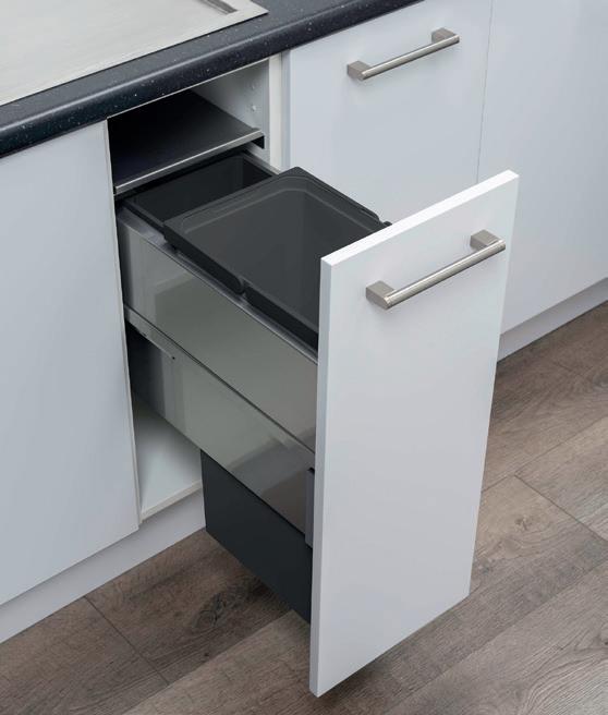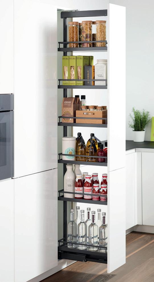 Atira metal drawer box with full extension and soft-closing action available in a choice of Anthracite or Silver (see Fig. D) Pan drawers have glass sides (See Fig E) Oak drawer box available as upgrade on Classic ranges (see Fig. G)