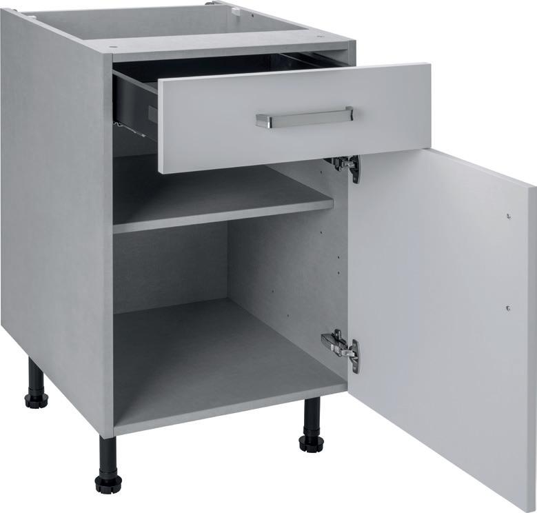 18mm colour co-ordinated cabinet with matching interior/exterior finish. Available with a choice of Cashmere, Graphite, Light Grey & Mid Grey cabinet edging as an optional cabinet edging choice