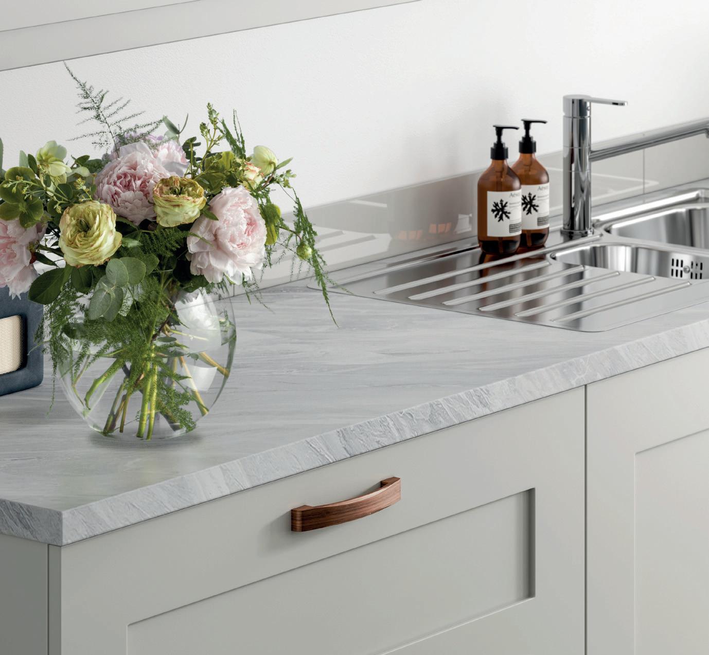 Create your unique style when selecting handles, work surfaces and wall splashbacks.