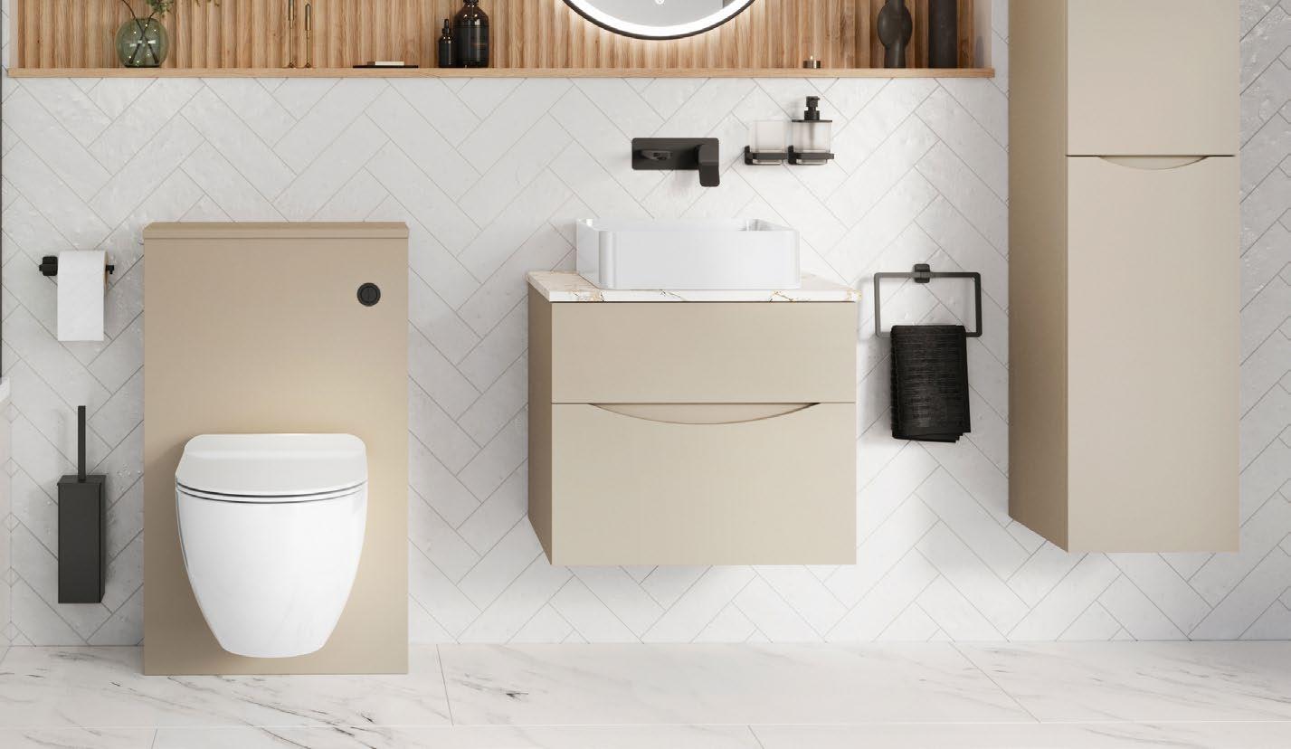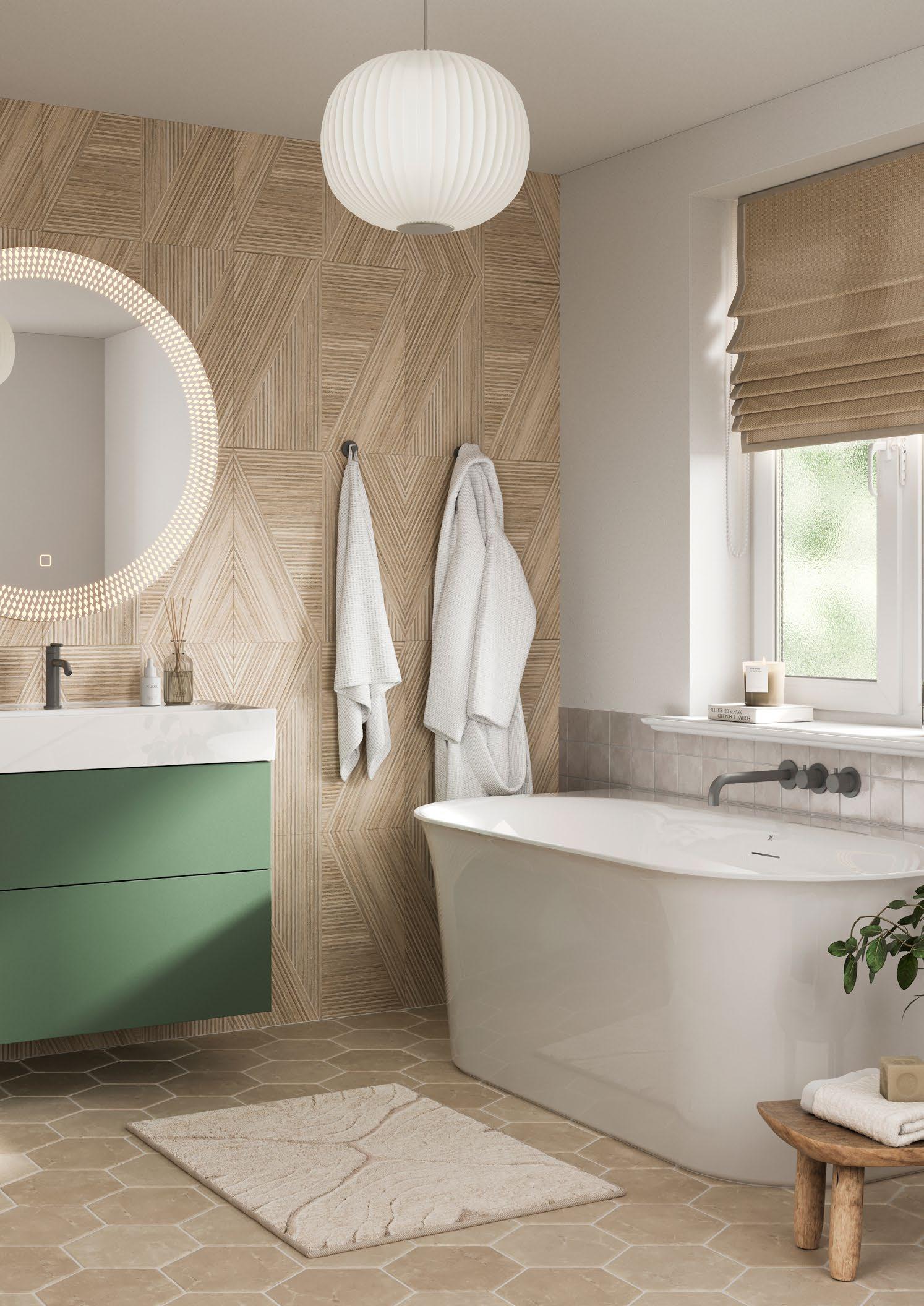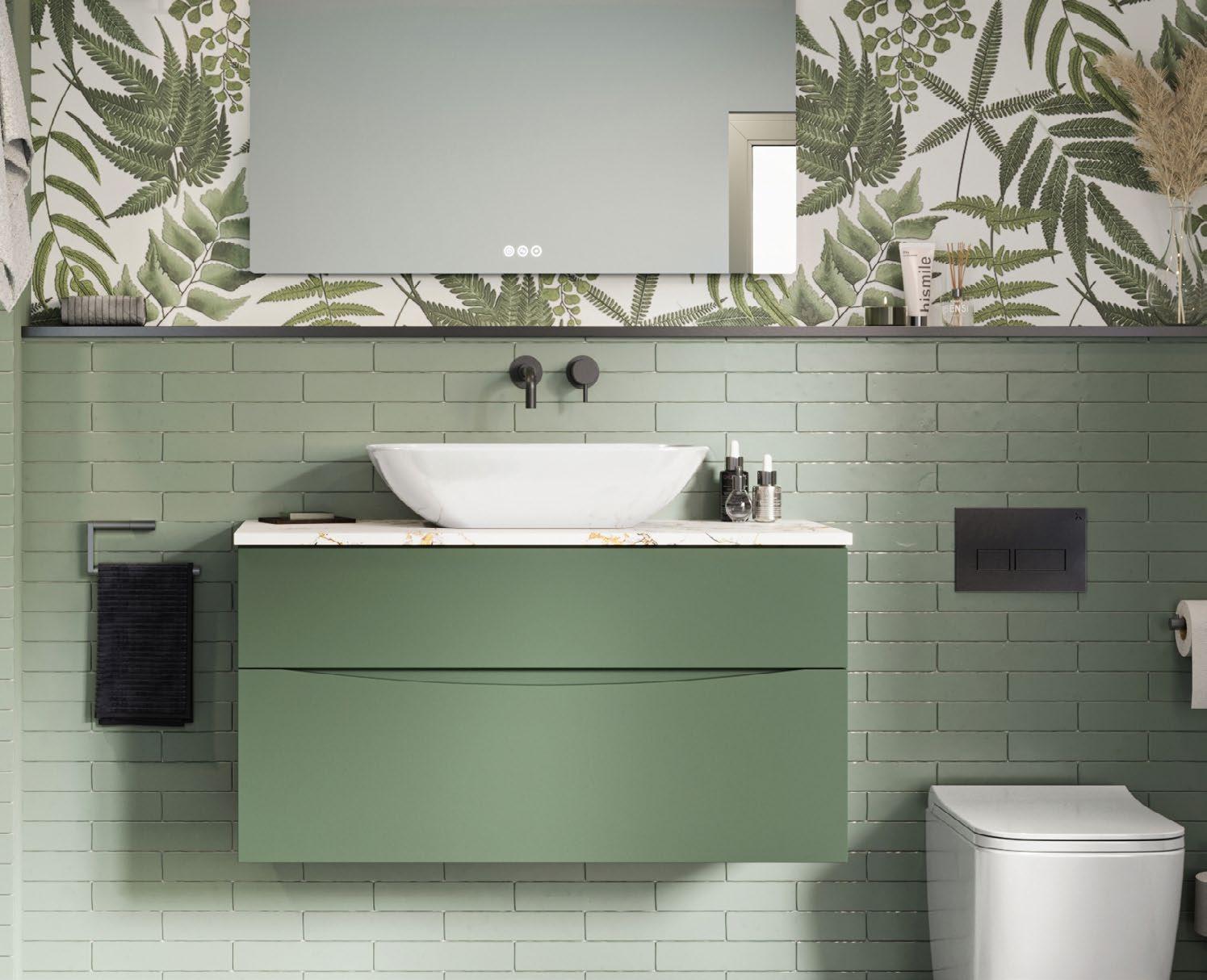 Create a calming and serene bathing experience with the Cursa Back to Wall Bath, featuring soft curves and a modern aesthetic. Use natural colours, such as our Avenue furniture unit in Sage Green, to achieve a blissful and soothing atmosphere perfect for unwinding at the end of the day.