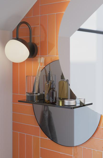 Create extra impact with the Present mirror and accompanying shelf. Mirrors for decoration are another trend and the tinted effect on both mirror and shelf helps create the look in this bathroom.