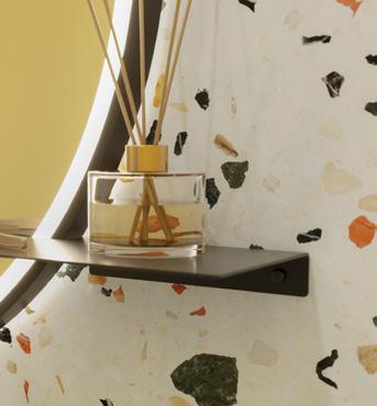 This is how smart and simple it can be - the nifty little Chic metal shelf floats in front of the mirror and is perfect for holding accessories or your favourite diffuser.