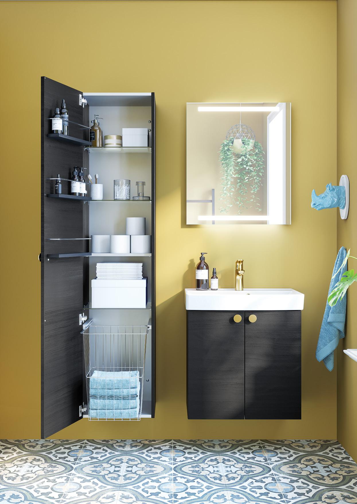 Clean and simple, with smooth, white fronts or perhaps a darker, more striking style in black structure? There is also warm oak, which will give you the every day feeling of being in harmony with nature. Choose your colour and finish according to the look and feeling you’re going for in your bathroom.