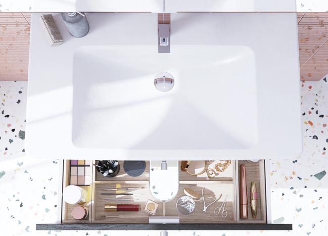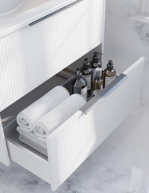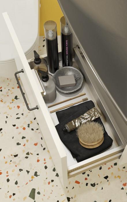 With Mido+ you can choose vanity units with either doors or drawers. Our drawer solution is available in two different depth projections.