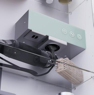 Incl. magnifying mirror, magnet, metal shelf and 1x230V socket with touch panel and USB port fitted on right
