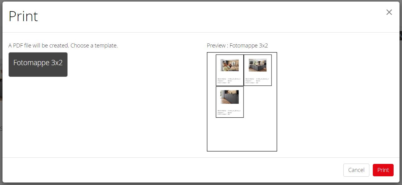 A photo folder 3 x 2 can be created from the selection of image data and downloaded as a pdf file.