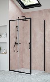 The patented magnetic guide system is designed to guarantee the smoothest motion as the door glides around the bottom rail.The sliding door with two inline panels can be installed in an alcove or with a frameless side panel option and is the perfect choice for a large, luxurious showering zone.