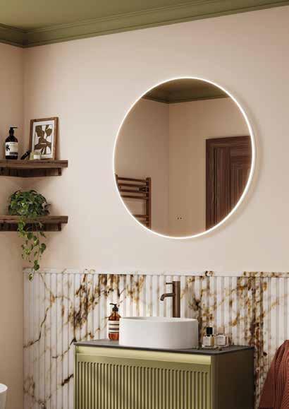 The Vaida mirror’s eye-catching finishes offer a pop of colour that can be the focal point in a neutral scheme or complement a contemporary aesthetic. This round tray mirror boasts touch-free operation, colour-changing LED illumination and a heated pad to reduce condensation. Choose from Dusky Pink, Sage Green, Brushed Brass, or Brushed Steel to suit your individual style.