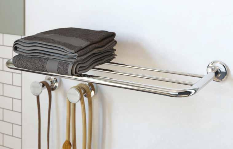 Coordinating wall-mounted accessories add to the industrial design aesthetic and offer the ideal finishing touch to your modern wetroom space.