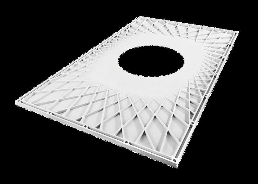 The Aqua-Dec EasyFit floor former can be trimmed anywhere up to the solid surround with a standard handsaw and features an underside cellular structure. The underside spoke pattern also provides increased rigidity to the structure of the floor former.