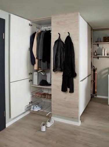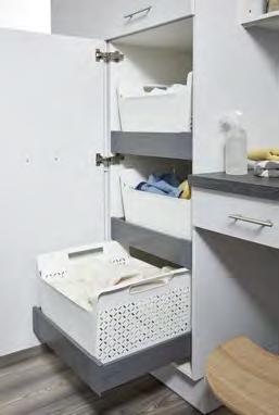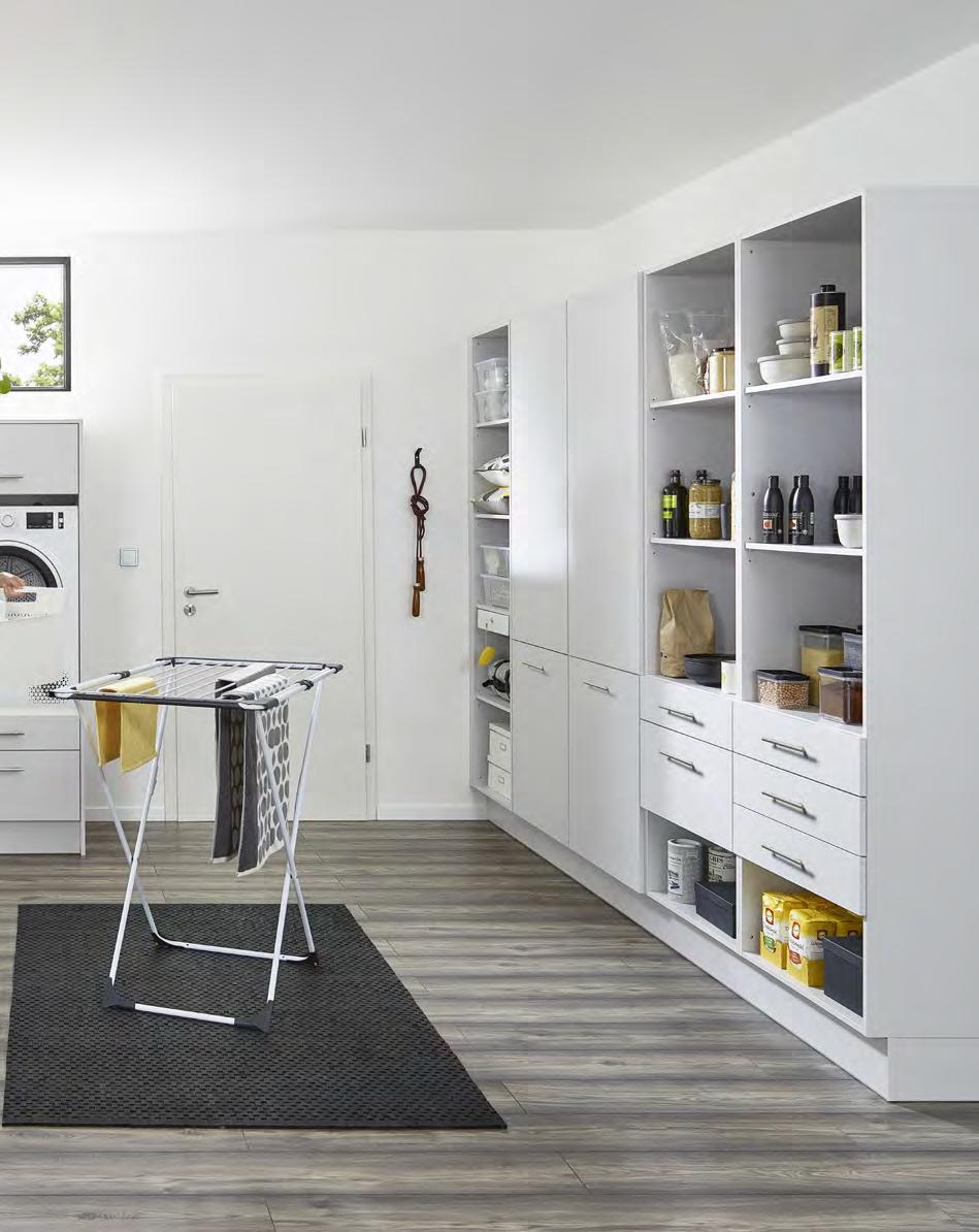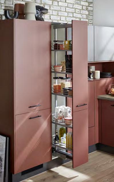 Tall cabinets fitted out with versatile organisation systems provide made-to-measure storage space. 01 The larder unit pull-outs glide out in virtual silence. Providing made-tomeasure storage space, they give you practical access from both sides.
