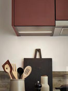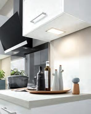 Lassen Sie Ihren Lieblingsort leuchten: 01 Die Up-/DownBeleuchtung sorgt am Hängeschrank innen und außen für einzigartige Lichtstimmungen. Arbeitsflächen können mit 02 quadratischen, 03 linearen oder 04 runden Lampen ausgeleuchtet werden. 05 Integrierte Linearleuchten in Oberoder Unterböden setzen Möbel mit Glastüren sehr effektvoll in Szene.