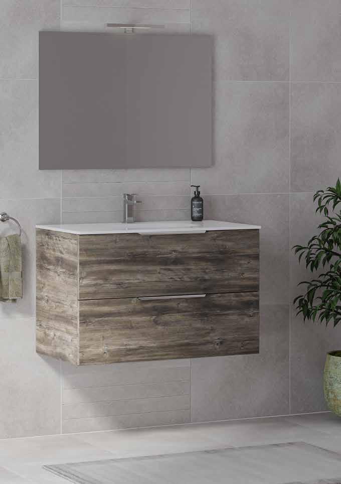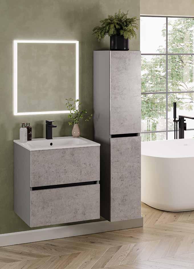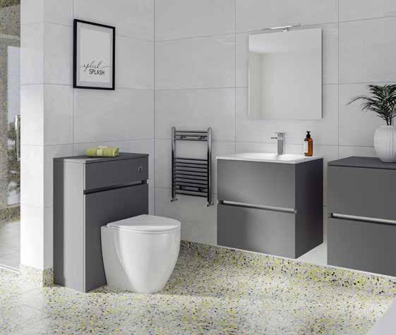 PRICE GROUP PRICE GROUP PRICE GROUP PRICE GROUP 1 PRICE GROUP 1 PRICE GROUP 1 PRICE GROUP 1 COLOURS Metro Matt Grey Mist shown with Bardolino Oak Worktops, BCHA908 Chrome Wave Handle, a Verona 63 Cast Marble Basin and a wall hung Quadra Rimless Wall Hung pan with Slim Soft Close Seat. Other features include the Chiaro Wall Hung LED mirror. METRO
