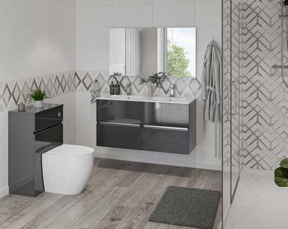 FASCIA FINISH STANDARD CARCASS COLOURS ➝ ➝ WHITE INTERIOR WHITE INTERIOR WHITE INTERIOR GLOSS GREY MIST GLOSS DAKOTA GLOSS WHITE space | style | design FITTED Image Gloss White shown with a Rondi basin and Eden pan. 12mm Cool Steel solid surface worktops. Mirrored wall cabinets open up and illuminate the room. Doors shown with BCHA888 letterbox handles. Note: these handles carry a surcharge. Image Gloss Dakota 14 15
