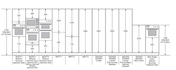 Moderna Kitchen appliance housings have been designed to fit appliances from most major manufacturers, but it is advisable to check with your local retailer prior to purchase to guarantee a fit and that venting tolerances are acceptable. Prices are correct at time of going to press, however they may be subject to alteration. E+OE.