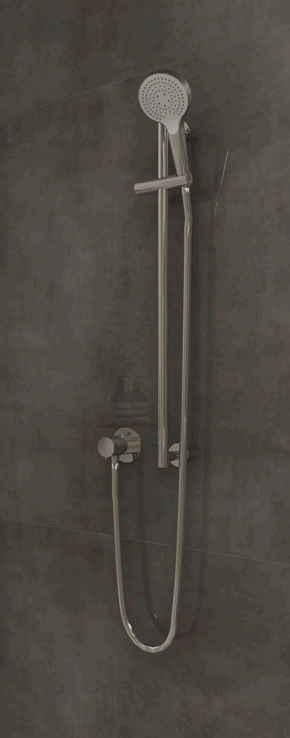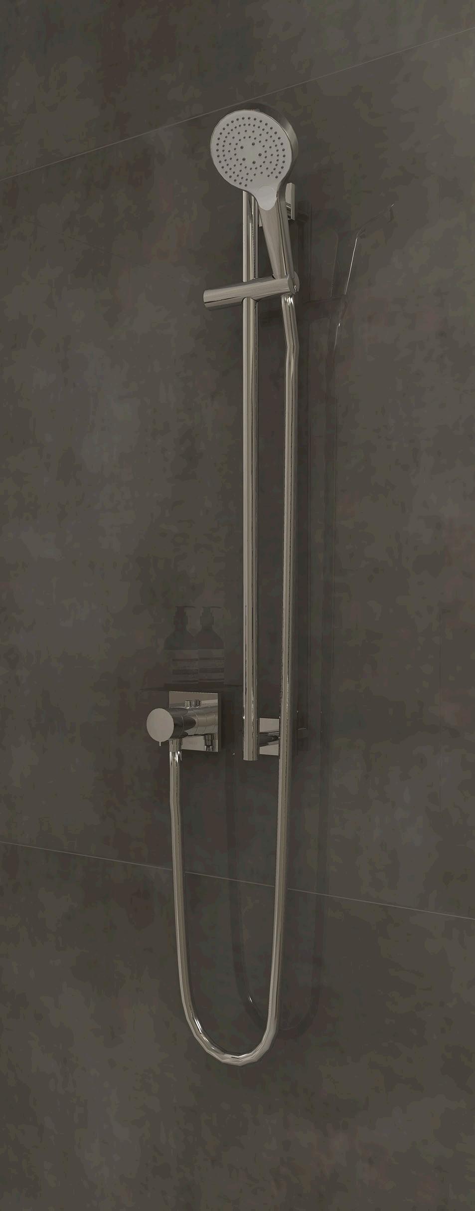 Thermostatic 2-way shower with separate stop valve and separate divert incorporating hose outlet, with 250mm over head and triple function hand shower with slide rail
