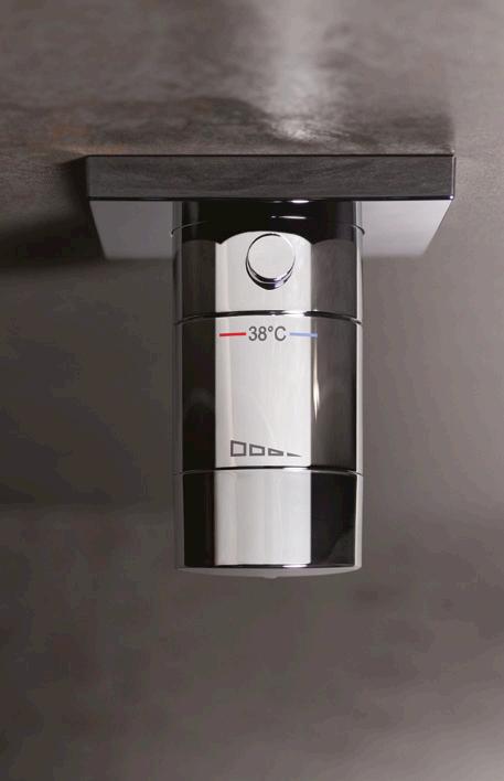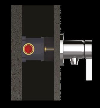 The single-lever mixer projects out from the wall exactly 90 mm and the thermostat 100 mm. The in-wall installation units are easy to install in thin walls or during subsequent modernisation work. The remarkably shallow minimum installation depth of 65 mm makes this possible.