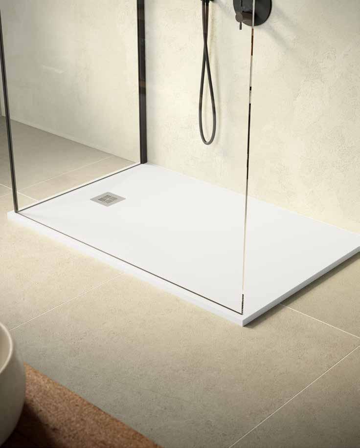 Combining innovation and design, this stunning, light weight, super slim shower tray is available in 2 colour finishes (slate effect white and slate effect grey), is slip and stain resistant and contains an *antimicrobial