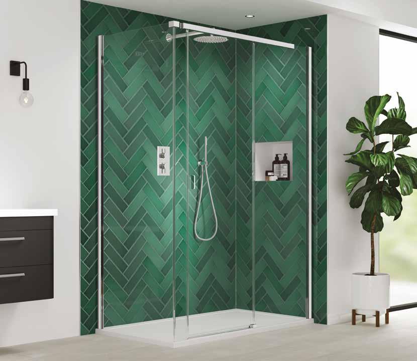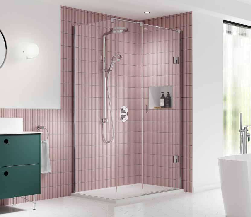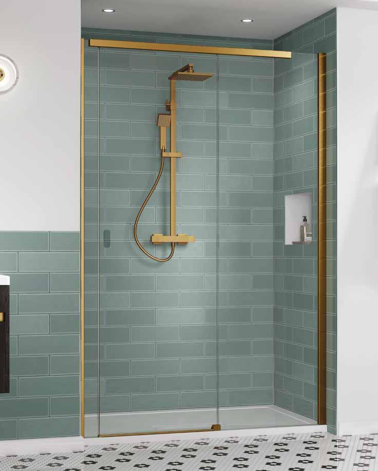 The pinnacle8 level access sliding and hinged enclosure are available in chrome, matt black and brushed brass finishes.