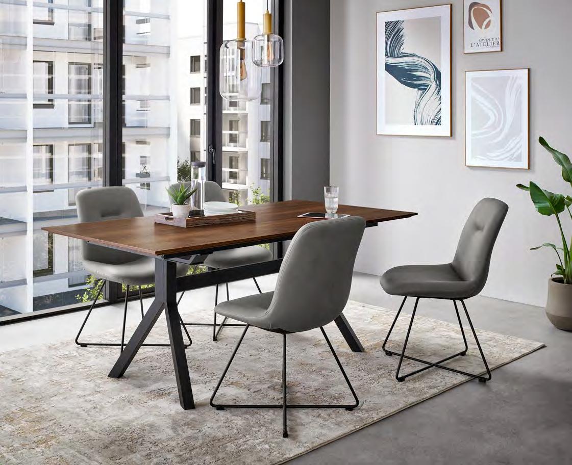 One style, consistently implemented. Create a harmonious space for both cooking and living and introduce recurring elements, with sideboards and cupboards featuring slate grey fronts. You can also add some warm accents with the Oak Line natural niche cladding and the extendable dining table in a light-coloured oak look. The Swing dining table chairs in cognac finish off the harmonious overall impression to perfection. And that’s how you create a special sense of space.