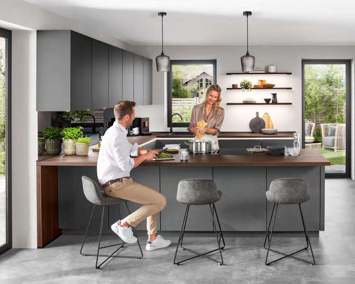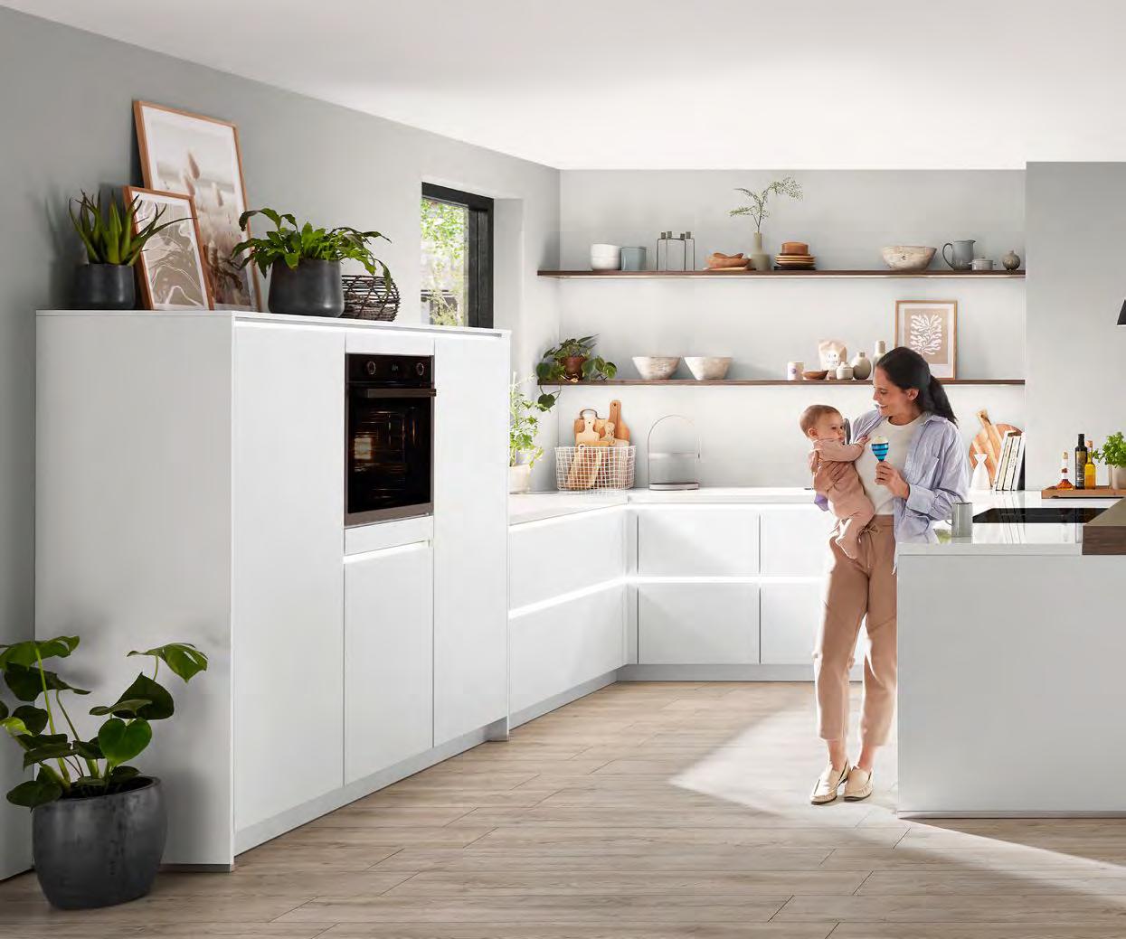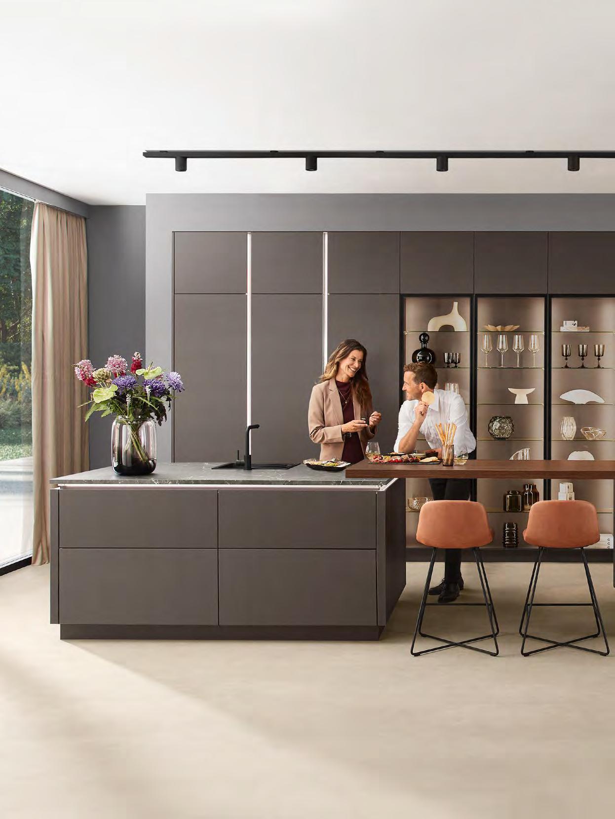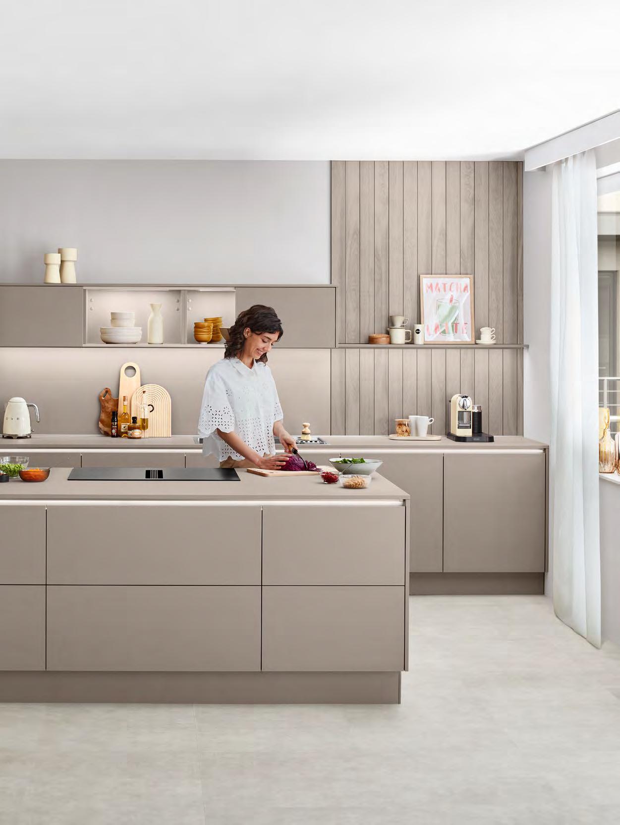Auf ganzer Linie eine besonders individuelle Gestaltung: Grifflose Küchen verbinden modernes Design mit Funktionalität. Ganz gleich, ob Ton-in-Ton oder als gezielter Akzent – LINE N eröffnet mit elf Griffprofilfarben vielfältige Optionen für einen ganz persönlichen Einrichtungsstil.