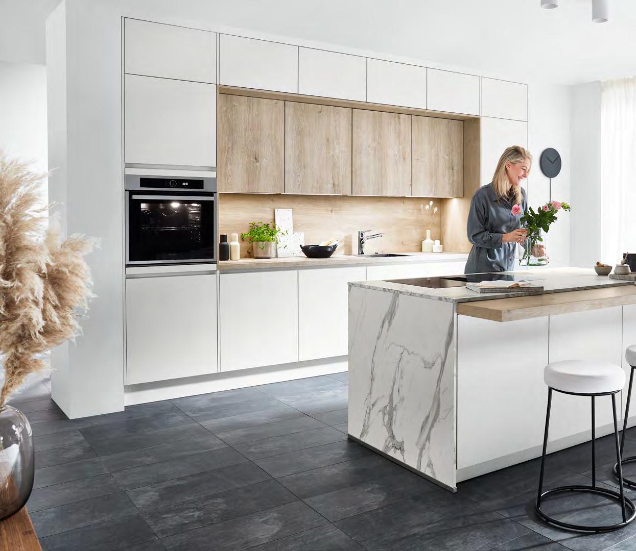 Highly customised design across the board: handleless kitchens combine modern design with functionality. With eleven handle profile colours to choose from, LINE N offers a whole host of options for personalising your interior style, whether tone-on-tone or as a targeted accent.