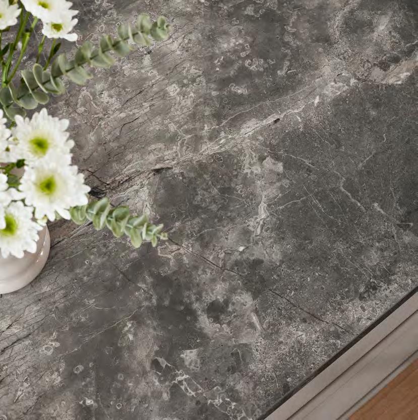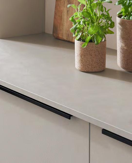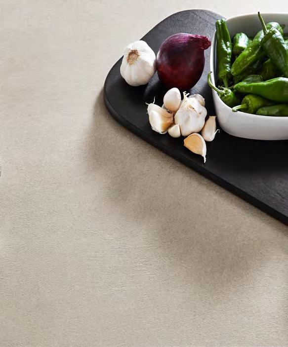 Die innovative Arbeitsplatte für alle mit hohem Anspruch an naturgetreuer Optik und Qualität dank echter Keramikschicht: stoßunempfindliche Designkante – kratzbeständig, stabil und wasserfest. Ein flächenbündiger Einbau von Kochfeld und Spüle ist möglich.