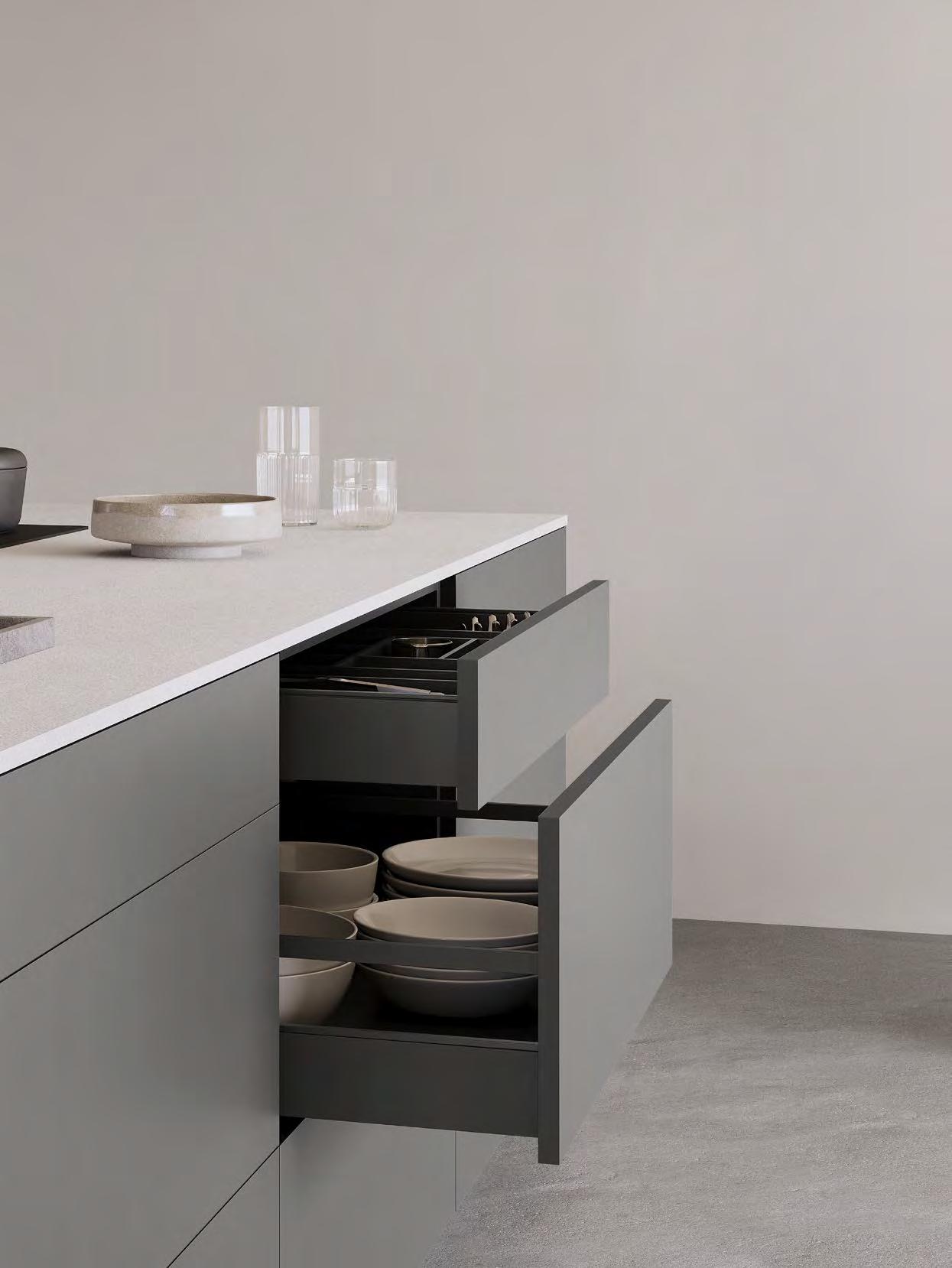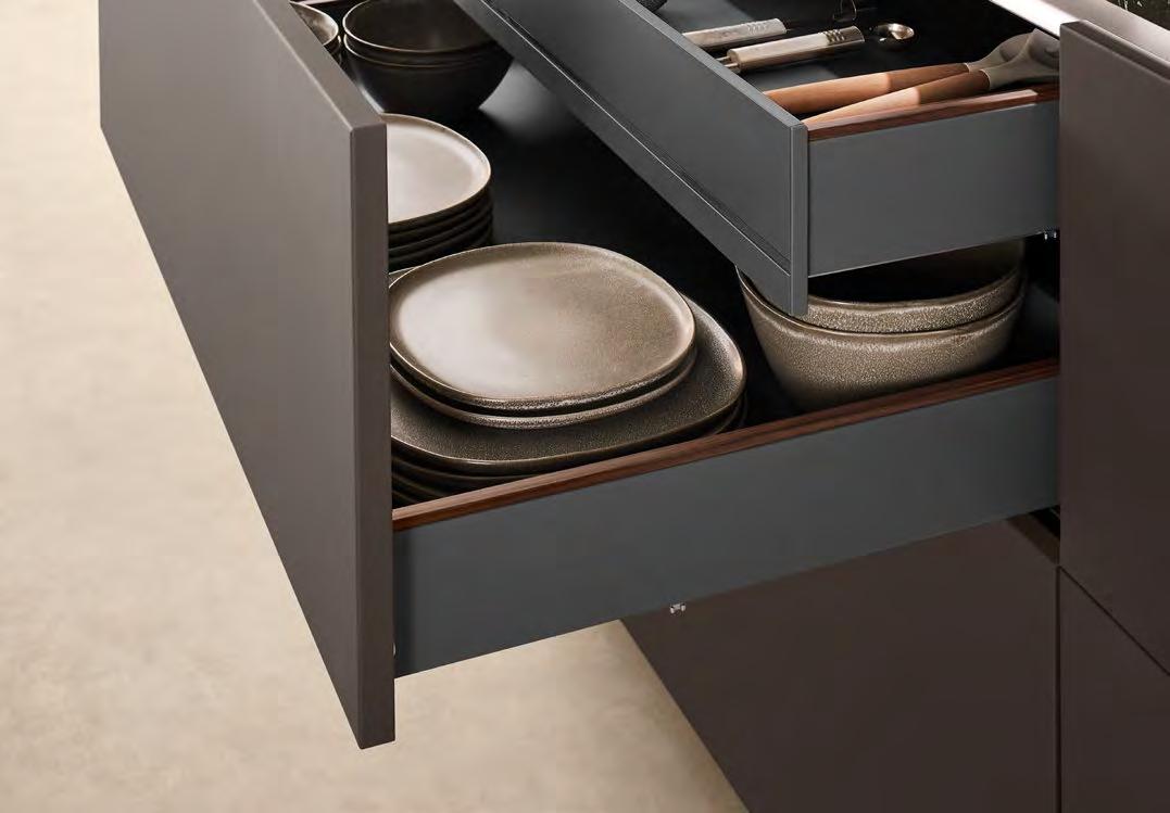 LINE One vereint einspurige Griffmulden mit Push-to-open-Funktion für die unteren Auszüge.