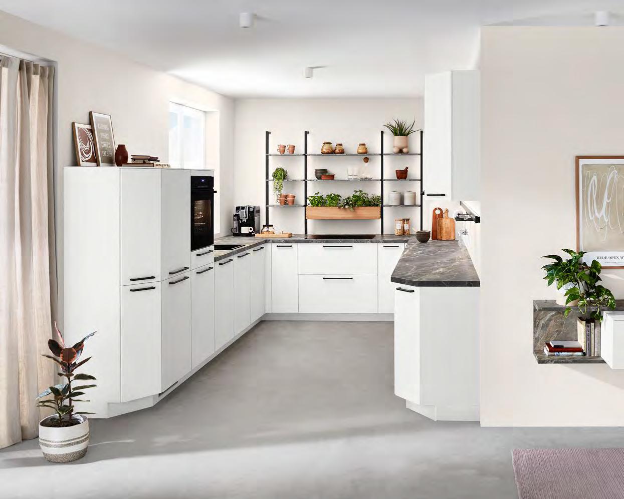 Alle Arbeitsplatten sind auch als Nische planbar. All worktops can also be planned as niches.