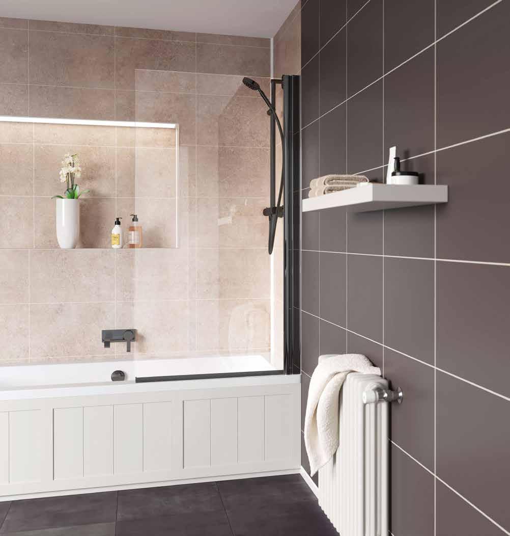 Using one main fixed front panel on a floor substrate allows homeowners the flexibility to design a personalised and contemporary showering space and choose from one of six colour finishes. For added luxury [and keep the water within the showering area], add a fixed or hinged deflector panel.