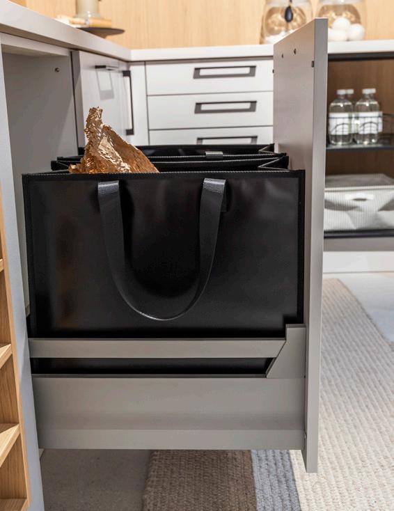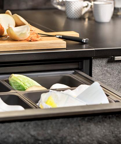 OJOS QUE NO VEN, CORAZÓN QUE NO SIENTE Abrir, llenar, cerrar y listo: los contenedores quedan fuera de la vista. Una solución limpia para todas aquellas personas que dan mucha importancia a un manejo sencillo.