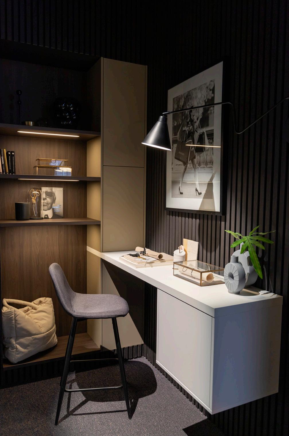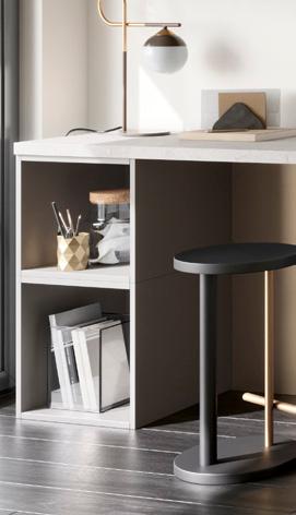 A VECES, UNA OFICINA EN CASA Y, OTRAS VECES, UNA BARRA DE CAFETERÍA Lo mejor de nuestros muebles para la oficina en casa es que pueden utilizarse con absoluta flexibilidad en función del diseño. ¿Una amiga se presenta de improviso? Ningún problema. El portátil y el bloc de notas se apartan a un lado y ya hay un sitio para disfrutar de un café en compañía. O dos.