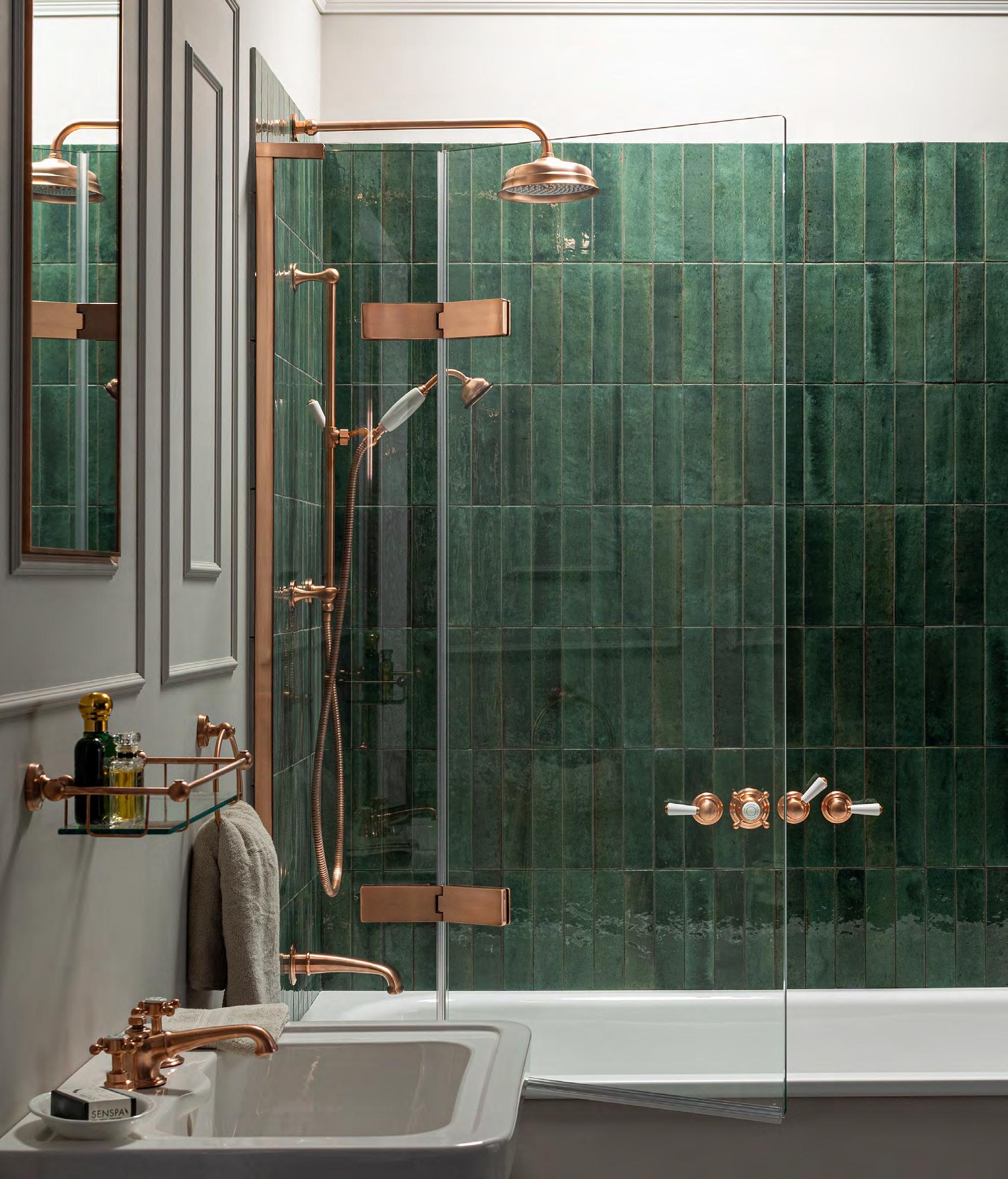 LEFT: EPB - EAUZONE TWO PANEL BATH SCREEN; LIVING COPPER