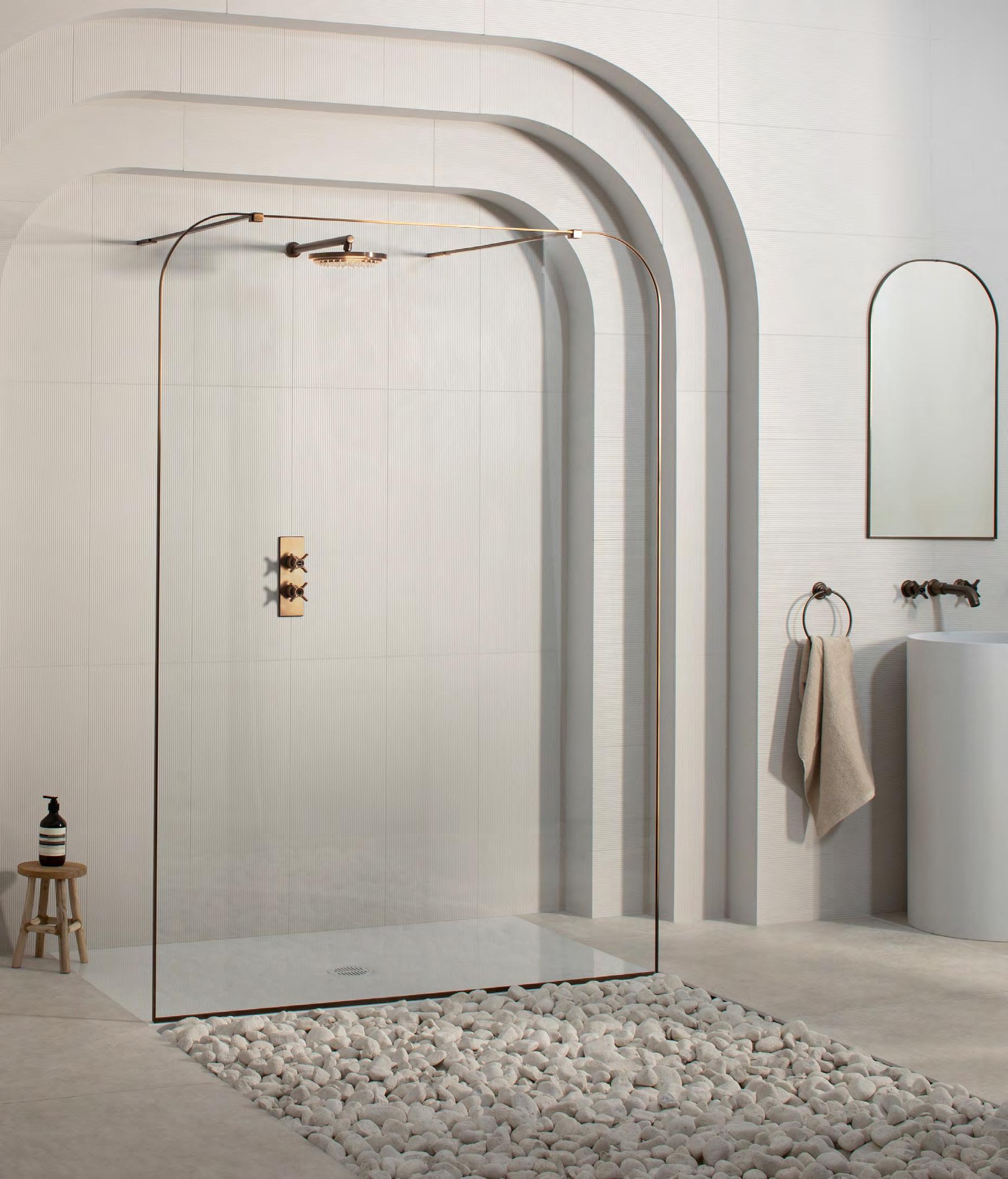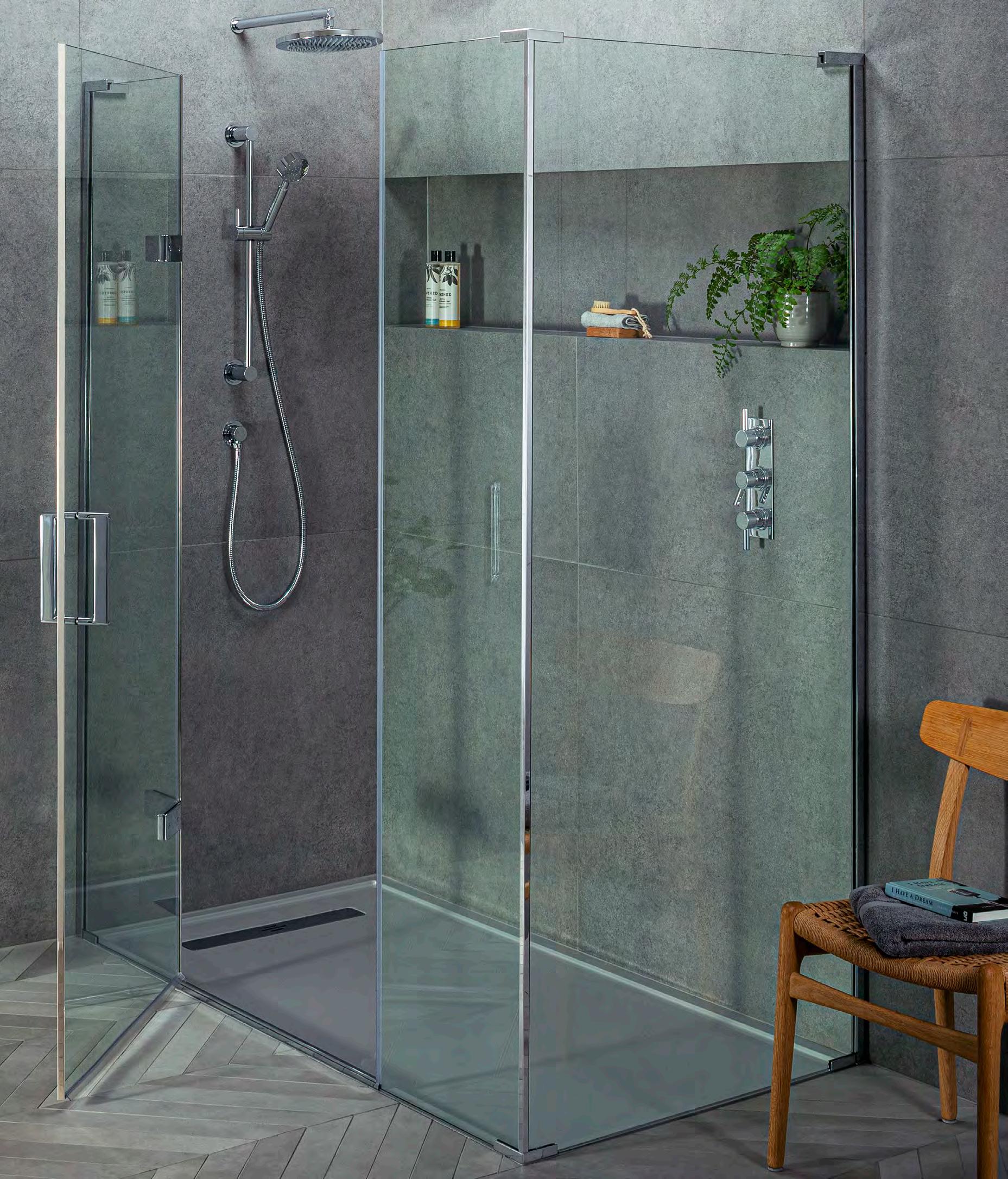 For fitting showering spaces into challenging layouts, bespoke sizes with cut-outs can be produced, catering for internal pipe chases, alcoves and around-bath setups.