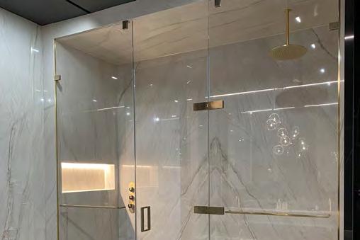 Matki Quintesse Shower Trays (see page 91) are perfectly suited to the EauZone Quintesse, providing a stunning foundation for this unique showering space. EauZone Quintesse can also be installed onto bespoke Quintesse-shaped Matki Preference Floors (see page 89) or directly onto a tiled Wet Room Floor.