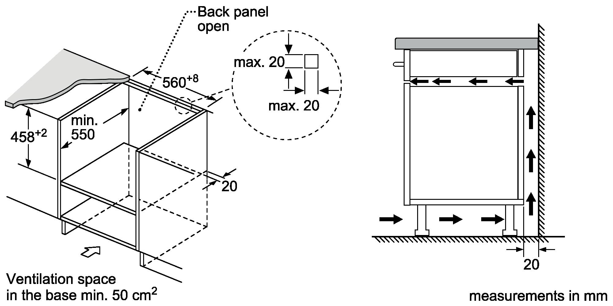 It is not possible to seamlessly combine any models in this value class with a drop-down door. It is also not possible to combine the N50 range seamlessly – this is due to where the fixing points are on the appliance.