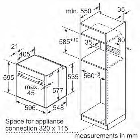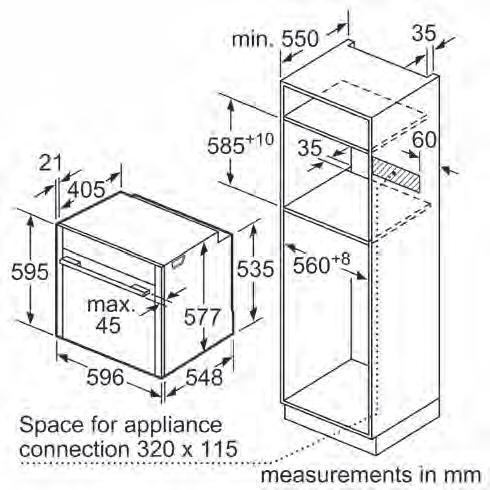 • 45cm Compact oven* with a 60cm Single Slide & Hide® oven.