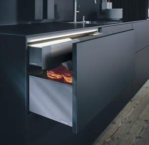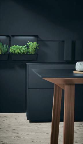THE COLLECTOR’S CHOICE: With the glass display unit, next125 provides the perfect setting to show off valuables and other treasures in style. That’s down to the combination of onyx black metal, real wood, glass doors in ultragrey and the elegant leather-look handle, as well as six shelves, providing plenty of space to display and impress, as form and content go hand in hand. Not only does the glass display unit enhance any interior design style as an aesthetic piece of utility furniture, with its dimmable LED lighting, it reveals deep inside and puts a spotlight on your collection of heirlooms, flea market finds, souvenirs and shopping hauls. The glass display unit can be free-standing or built into tall units. Either way, it’s the gem of your home.