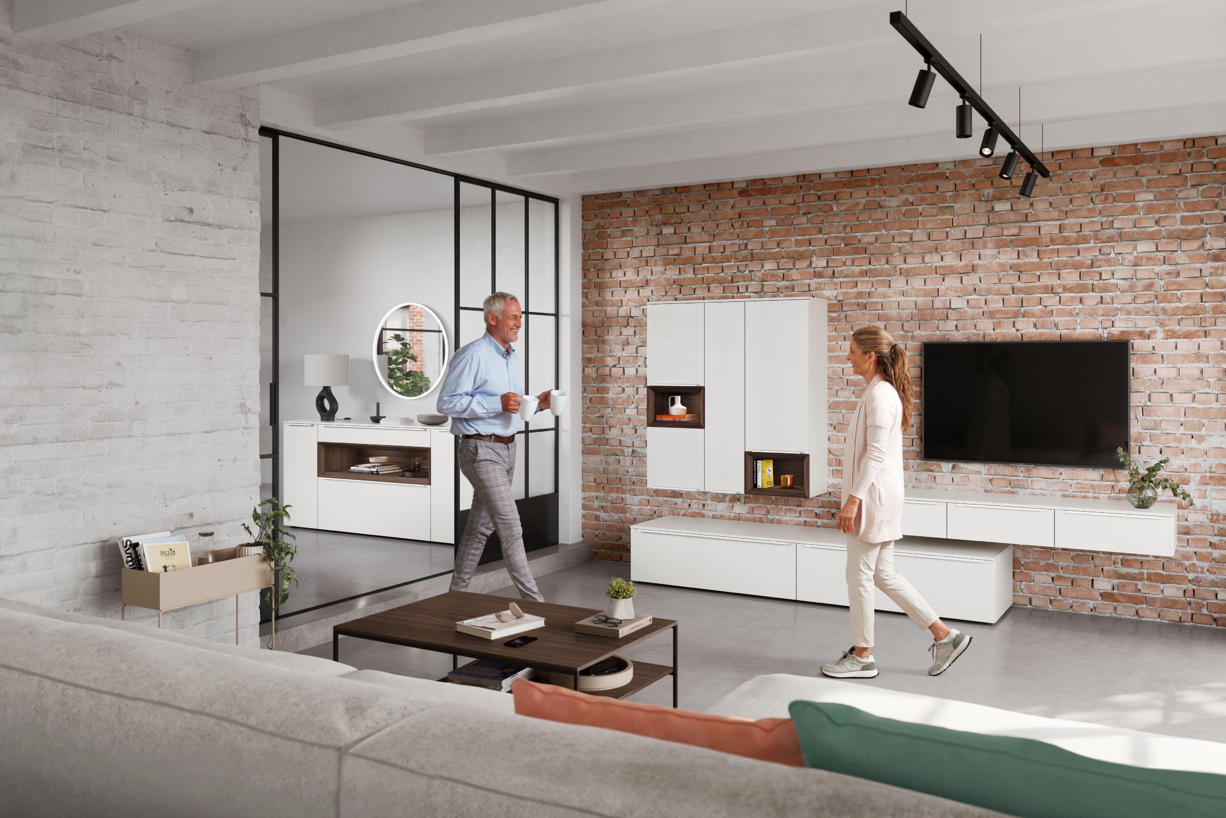 Our home is always a place of retreat from our busy lives and the centre of our social activities, where laughter and conversations with family and friends fill the room. This is where we feel comfortable – where we can take it easy and fulfil our desires, ideas and dreams. The living and dining area occasionally also double as a relaxing lounge, a home cinema, a creative workshop or a private fitness zone. Our home offers us the freedom to do what makes us happy. Our furniture can help you reach your full potential and create an oasis of well-being, from multi-room living concepts to creative solutions for optimal use of storage space in the wardrobe and dressing room. Find your source of inspiration and develop a space in which you can make memories that last a lifetime.