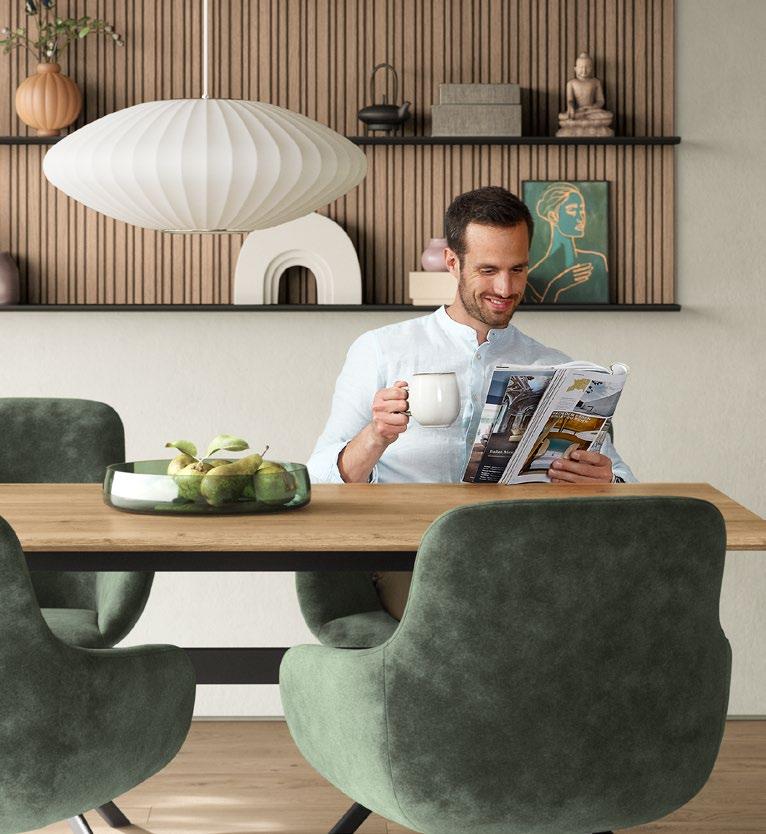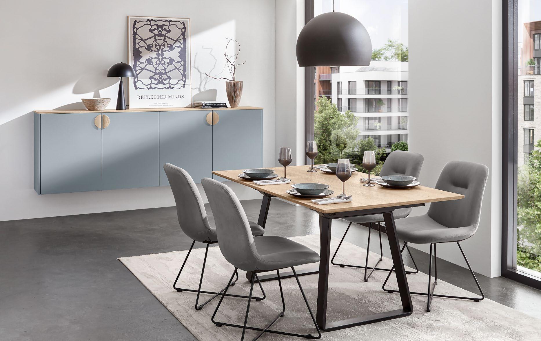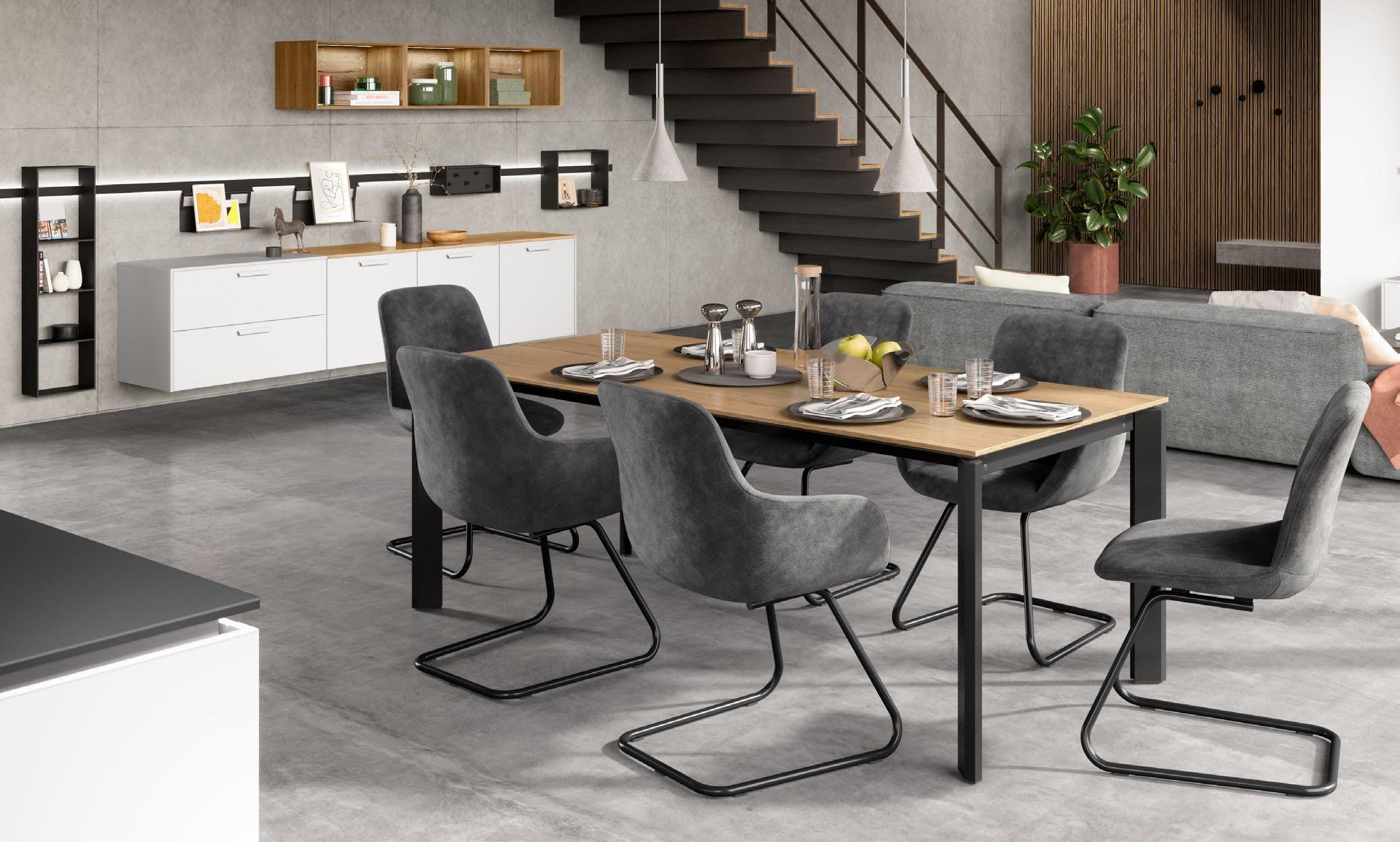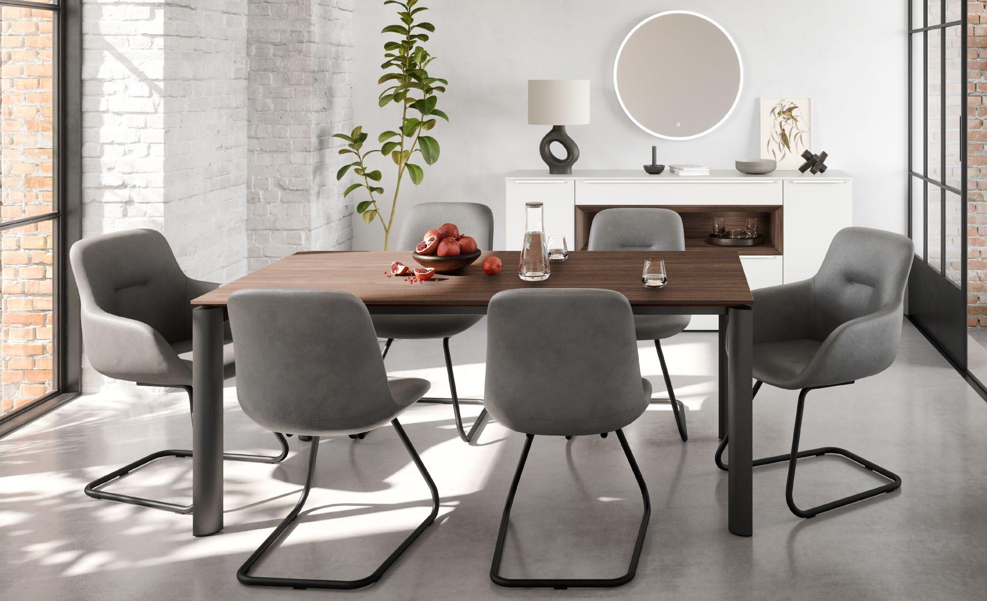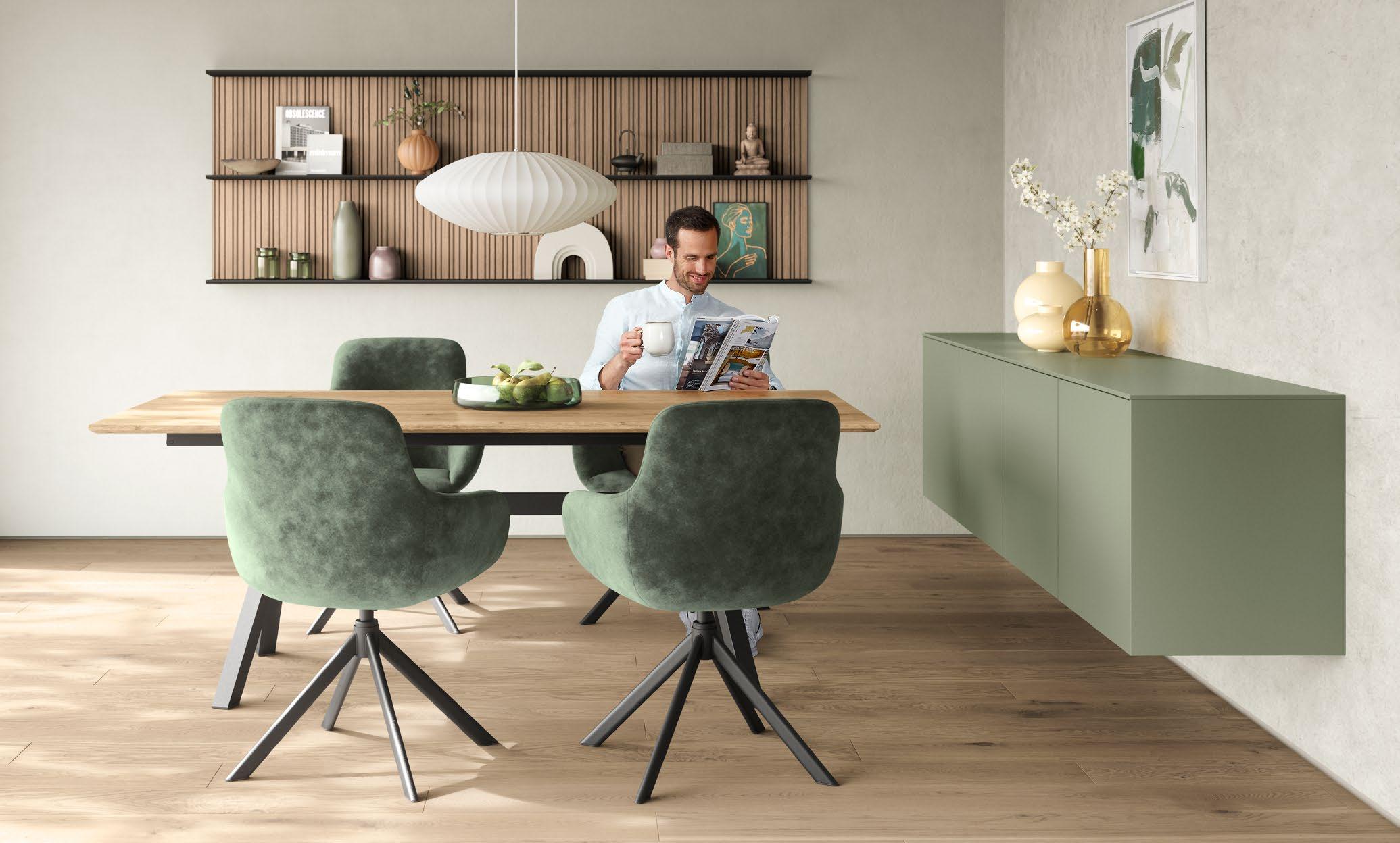 Genussmomente: Zuhause jeden Tag genießen mit unseren neuen Esstischen und den passenden Polsterstühlen und -sesseln.