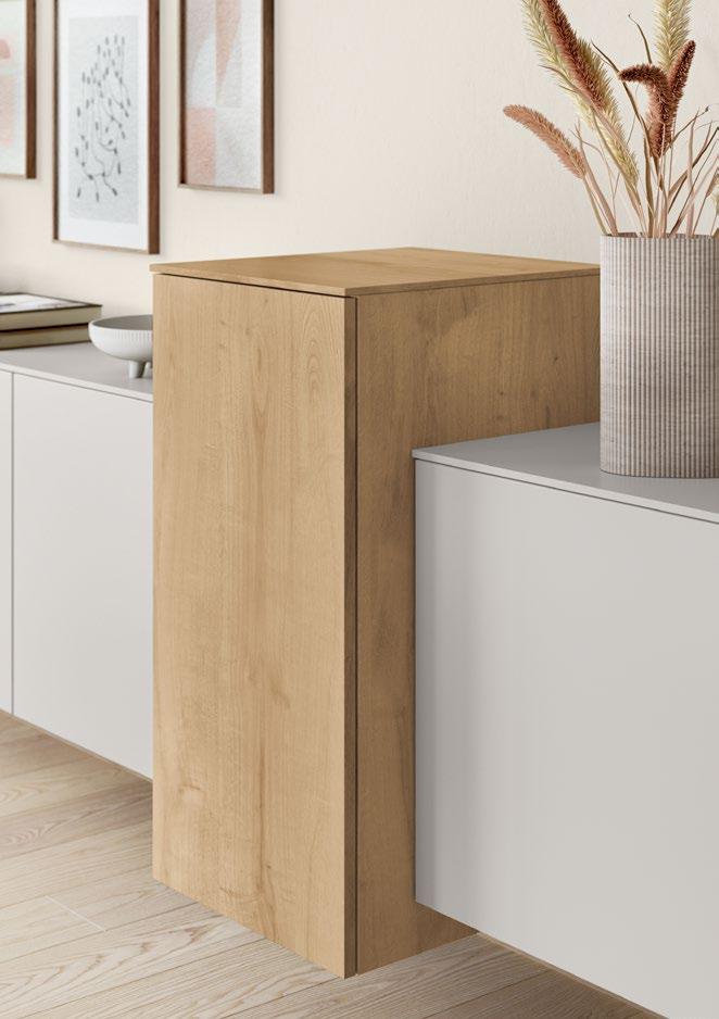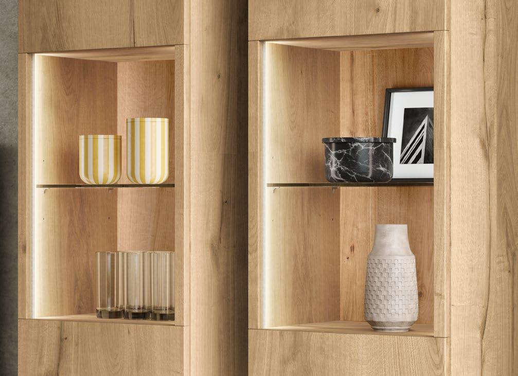 Showcase your décor in the right light. The genuine wood veneer with an elegant grain provides the room with an additional touch of warmth.
