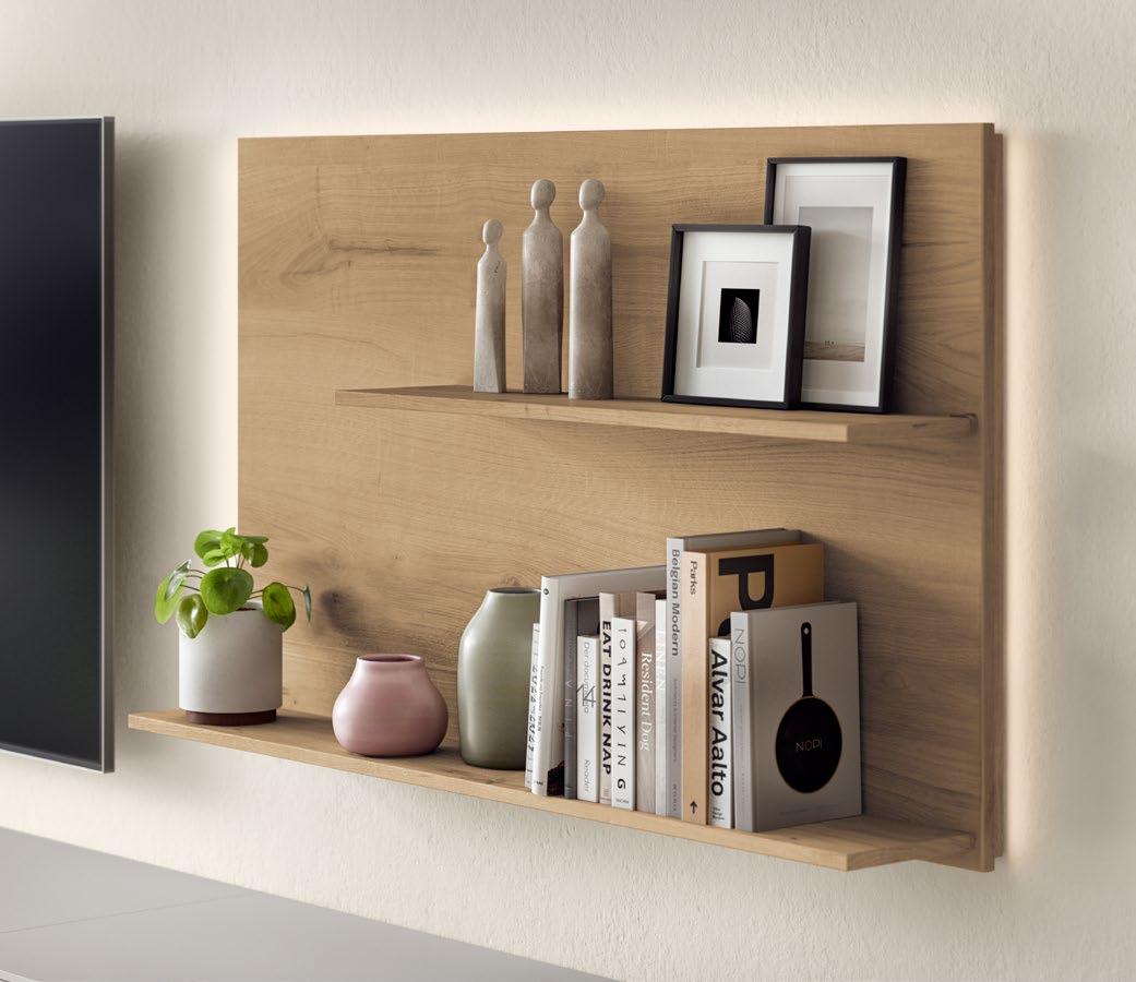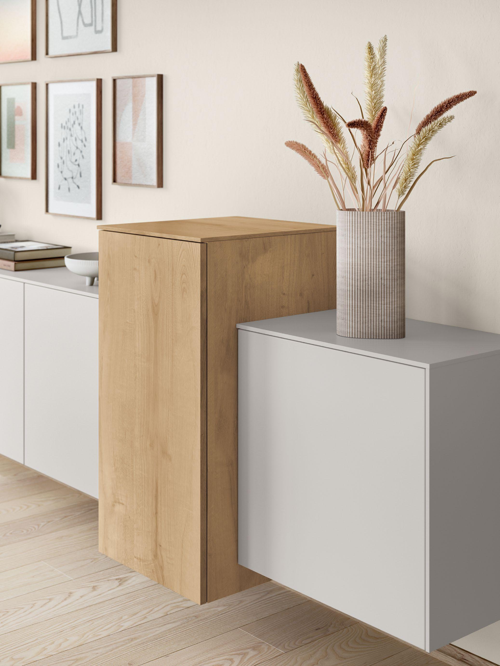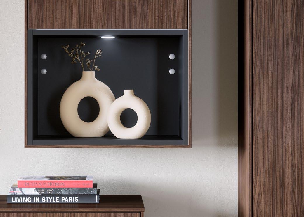 Hier rücken Sie Ihre Dekoration ins rechte Licht. Das elegant gemaserte Echtholz-Furnier verleiht dem Raum dabei eine zusätzliche warme Ausstrahlung.