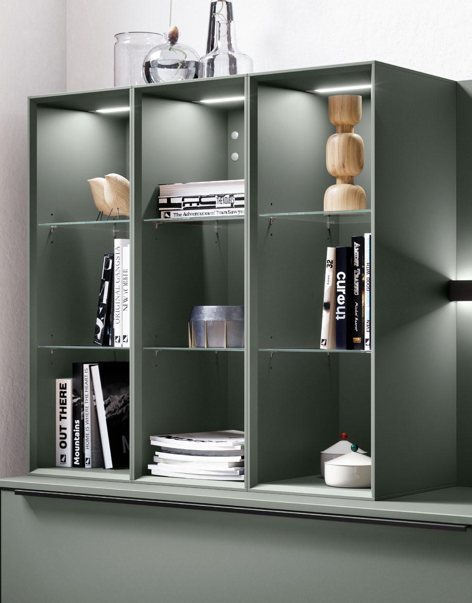 Die Regaleinsätze Case bieten überraschend vielfältige Gestaltungsoptionen für den Wohnbereich, Küche und Bad: Case setzt farbliche Akzente, erweitert den Stauraum und bietet Platz für dekorative Lieblingsstücke – optional auch mit Beleuchtung und Glasböden. So lässt sich jedes Einrichtungskonzept ohne viel Aufwand raumübergreifend und durchgängig gestalten.