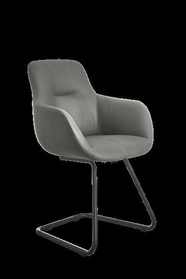 Das Modell mit Freischwinger-Gestell in Stahl Schwarz ist als Polsterstuhl oder Polstersessel erhältlich.