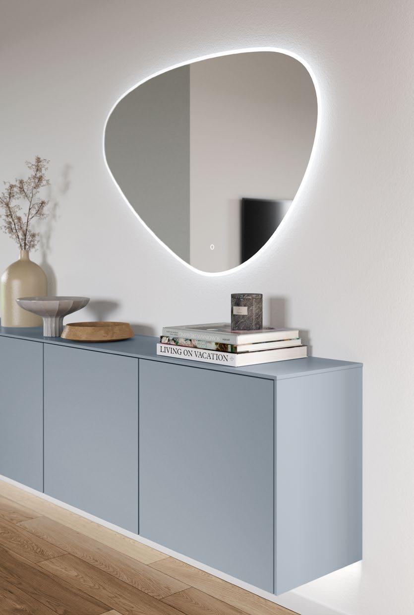 Well-planned freedom! All the elements come in various heights and two widths, which can be mixed and matched to create your very own wardrobe and shoe cupboard – either open or with closed fronts. A lovely accessory: the wall mirror with straight lines.
