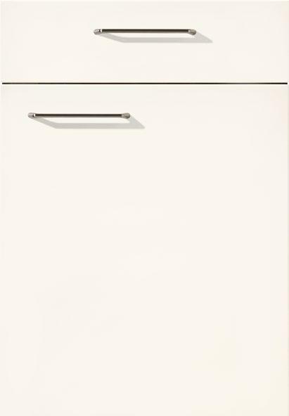 The simple front design and soft colour ivory underline the elegant restraint of this plan. The honed surface creates a tranquil atmosphere without bothersome light reflections. Lacquered on five sides and highly robust, these fronts are designed to impress with their flawless look.