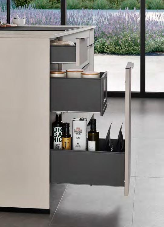 LINE One combines single-track recessed handles with the push-to-open feature for the lower pull-outs.