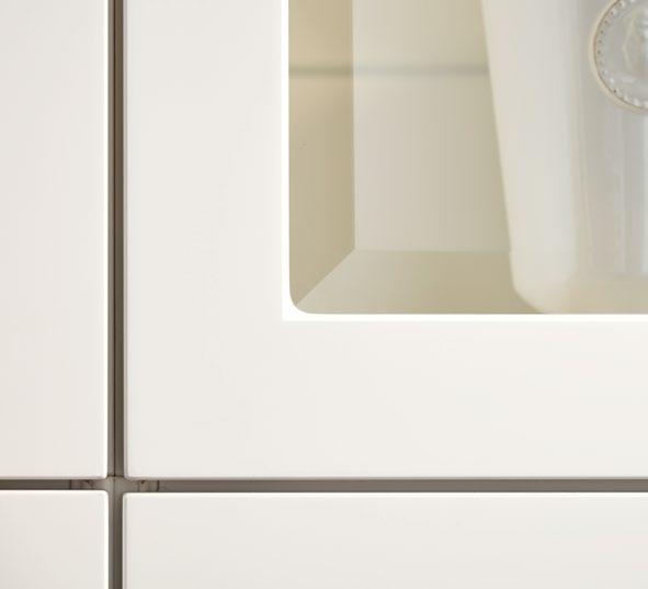 The ranges VELLUTO and PEARL offer velvety-matt surfaces, likewise with anti-fingerprint properties – VELLUTO is a high-quality lacquer front in the entry-level price segment while PEARL is an exclusive acrylic glass front in a higher-end segment.