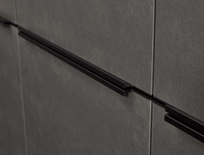 2 The vertical lines of the handle trim are a stylish design element and add emphasis to the kitchen‘s sleek linear look.
