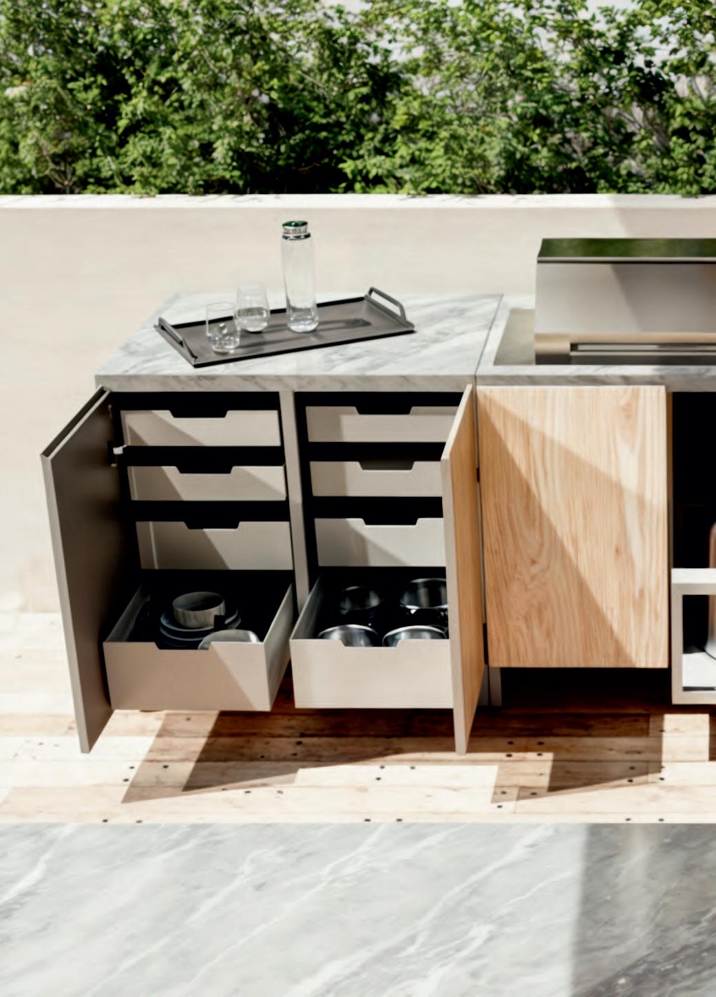 Unser Sortiment an Outdoor-Küchenmöbeln ist modular aufgebaut und hochgradig anpassbar.